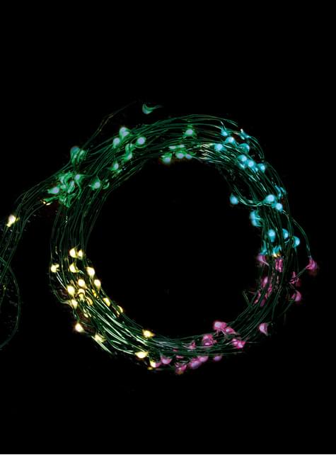 Incluye: hilo luminoso de 5 metros. Con 50 luces LED multicolores, multifunción con 8 movimientos. Con enchufe (corriente 220V)